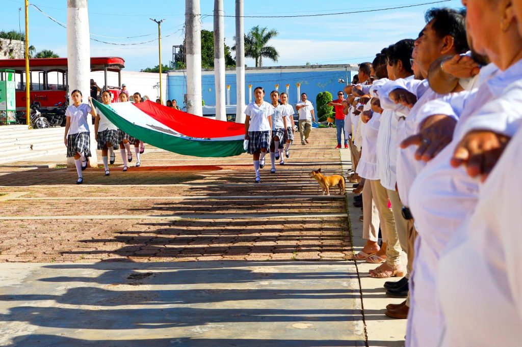 La escolta de la Escuela Secundaria General No. 16 “Moisés Sáenz Garza” tuvo el honor de portar y entregar la bandera nacional dando paso a la entonación del Himno Nacional Mexicano y al Himno Campechano fortaleciendo el espíritu cívico entre los asistentes.
