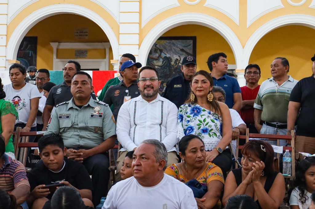 La escolta de la Escuela Primaria Carlos Rivas de la Junta Municipal de Bécal abrió el recorrido, dando paso al contingente de la H. Alcaldía junto a las autoridades ejidales. Después continuaron las escuelas secundarias, que lucieron vistosas tablas rítmicas.