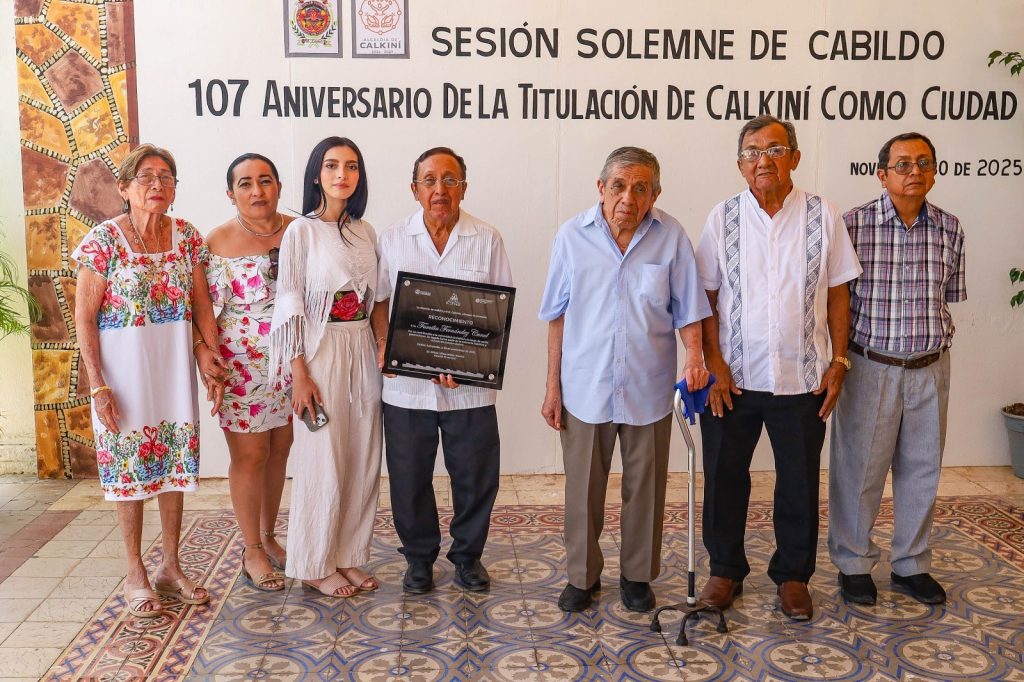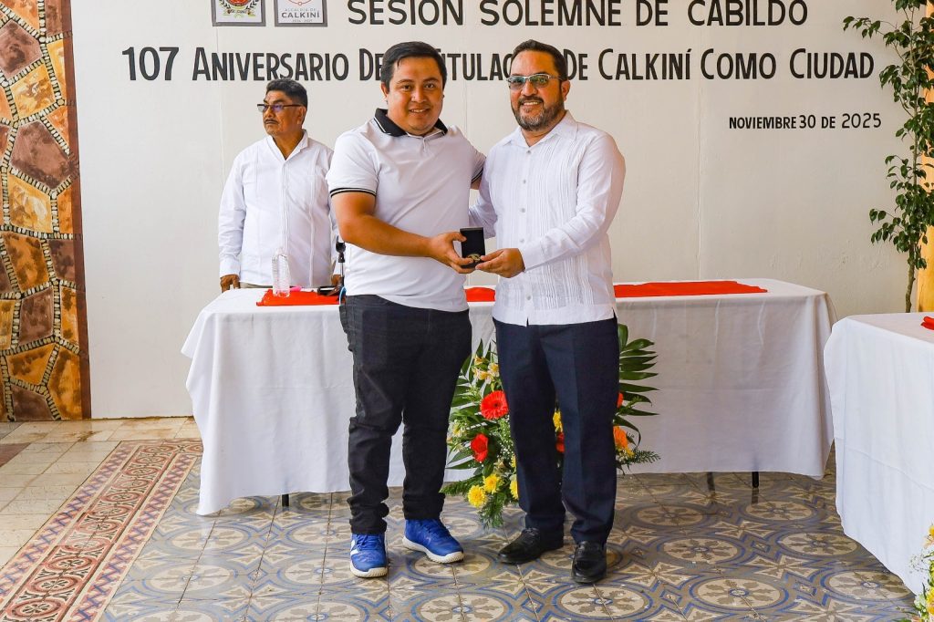 Durante la ceremonia, el alcalde entregó el Mérito Ciudadano a Mayte Chablé, destacando su dedicación y el impacto positivo de su labor en el desarrollo comunitario. En el mismo sentido, se otorgó el Mérito Deportivo a Luis Demetrio Alpuche Yah por su trayectoria y compromiso con la promoción del deporte en el municipio. Debido a compromisos de agenda, el galardonado no pudo estar presente en la sesión, por lo que su reconocimiento fue recibido por un representante, en el marco de la XXXIV Feria Artesanal, Cultural y Deportiva Calkiní 2025.