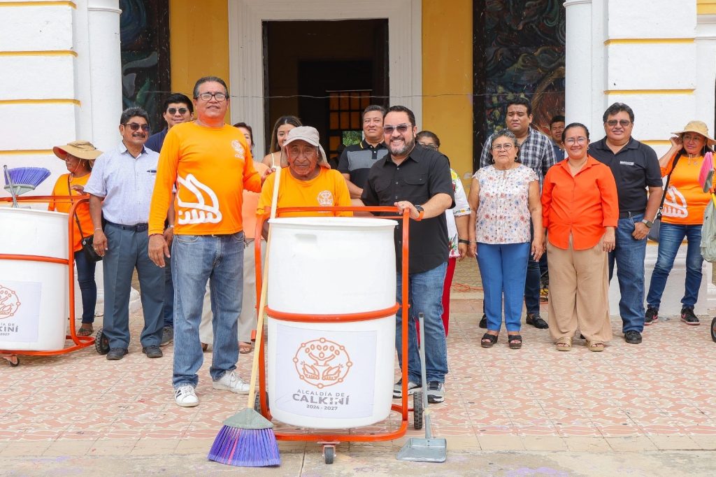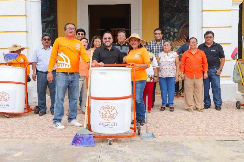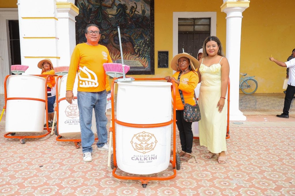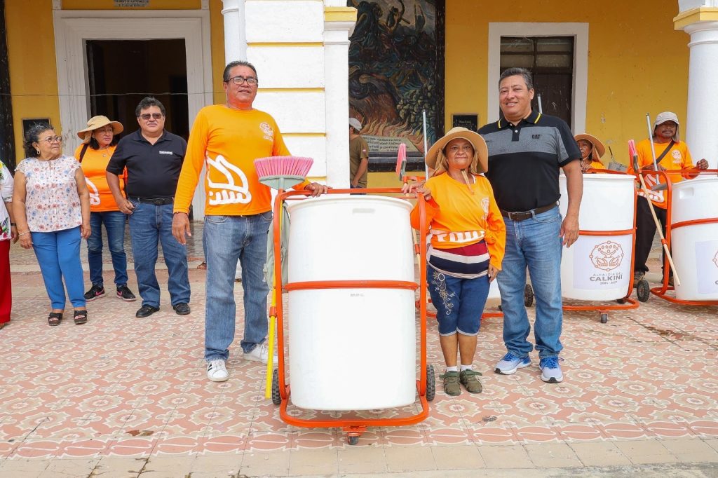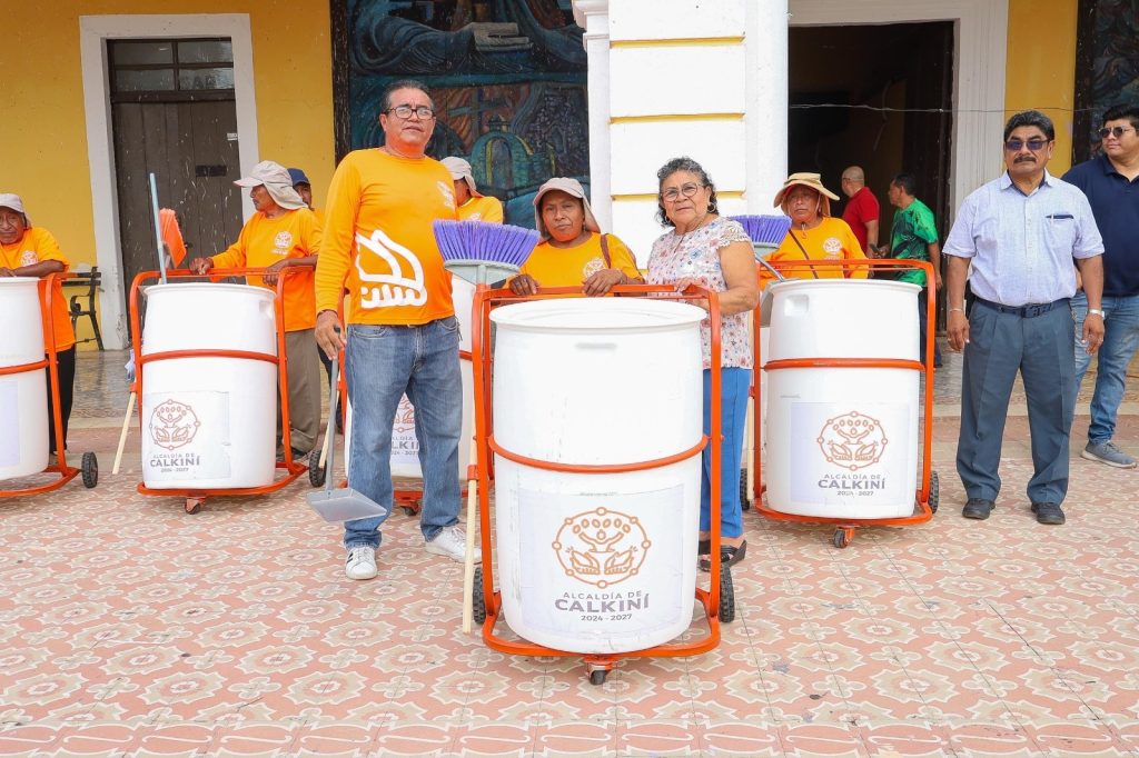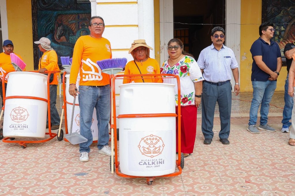 La dotación incluye botes recolectores, escobas y recogedores, herramientas que facilitarán las labores de recolección, mantenimiento y cuidado de los espacios públicos, mejorando así la imagen urbana de Calkiní.