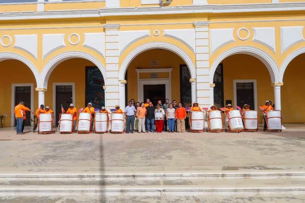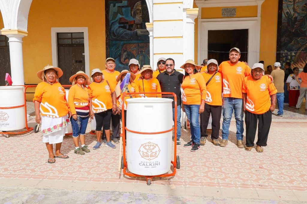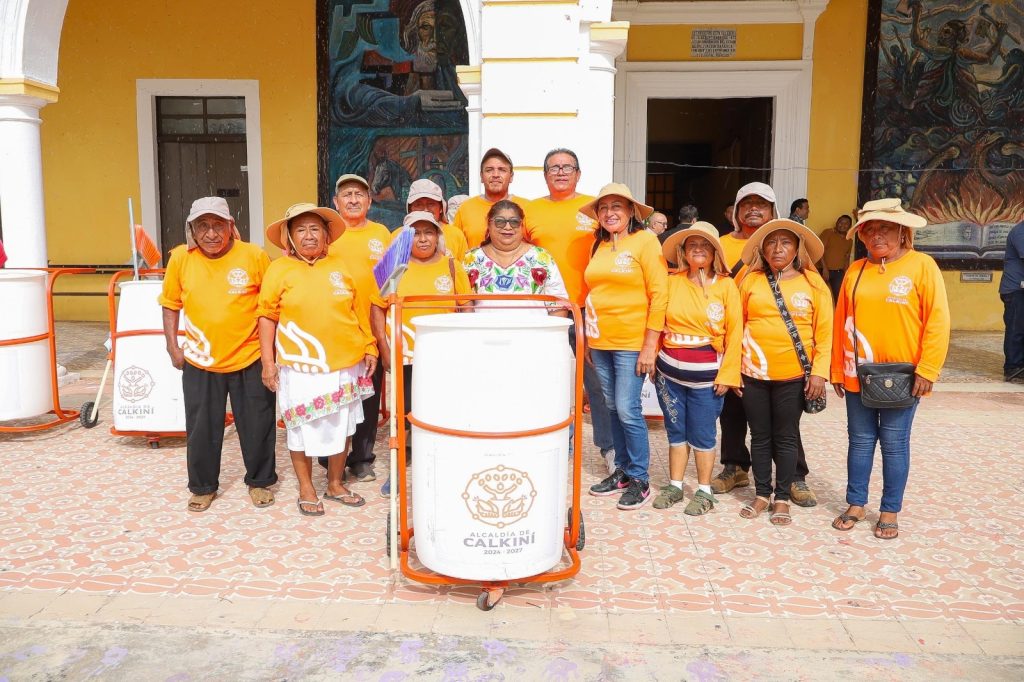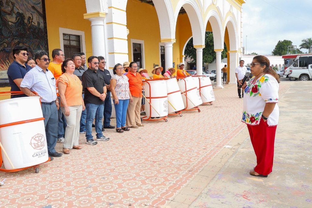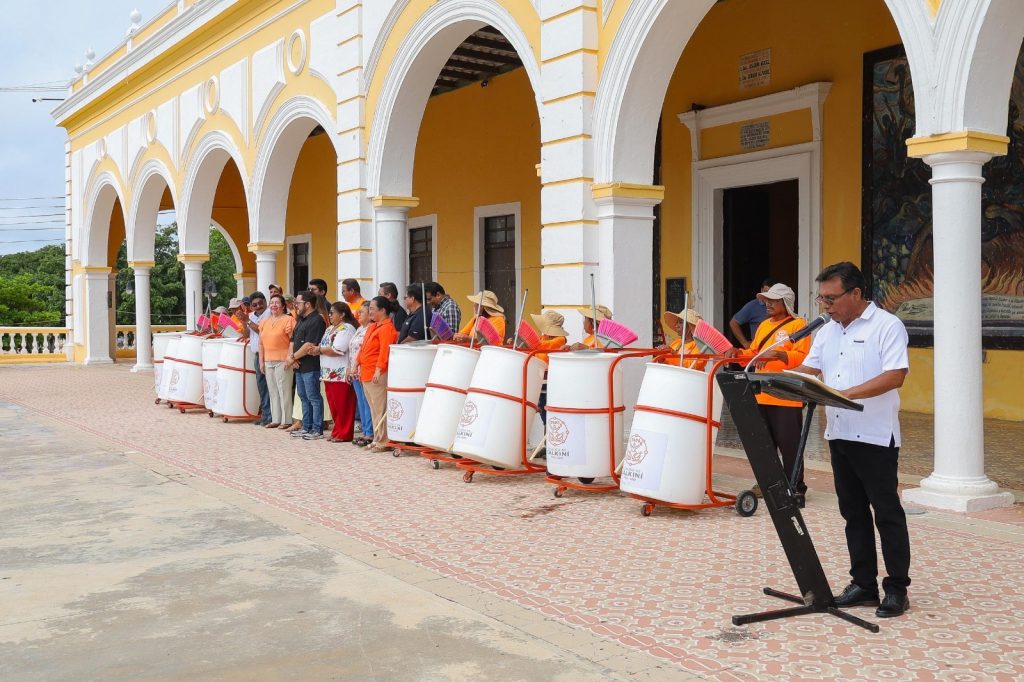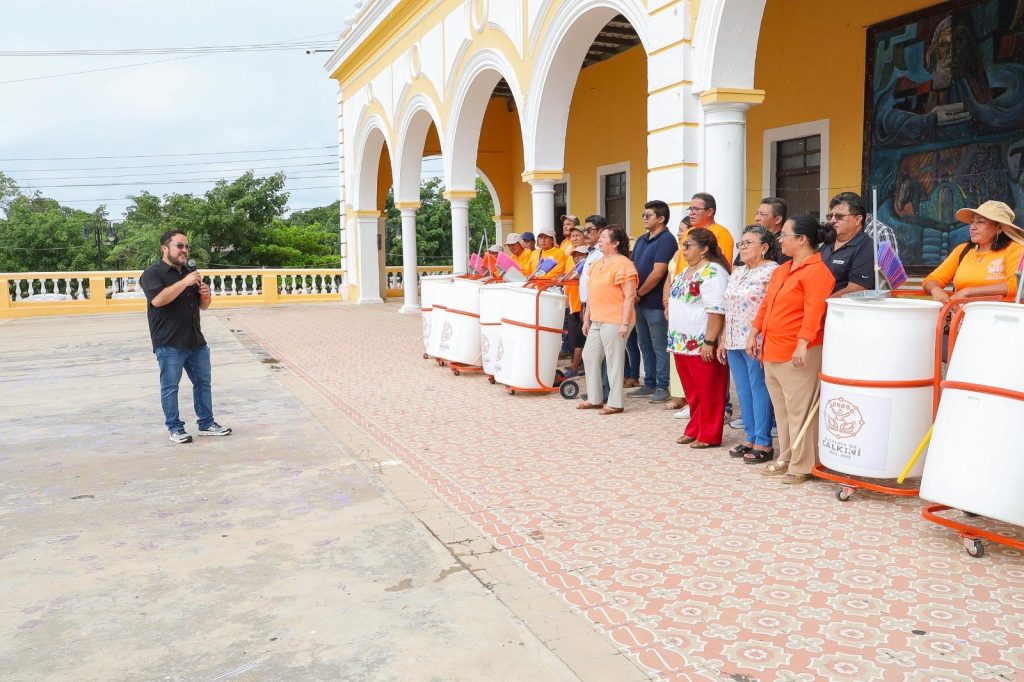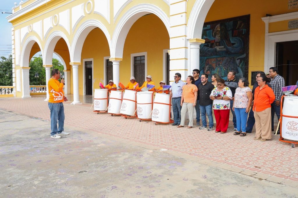 La dotación incluye botes recolectores, escobas y recogedores, herramientas que facilitarán las labores de recolección, mantenimiento y cuidado de los espacios públicos, mejorando así la imagen urbana de Calkiní.