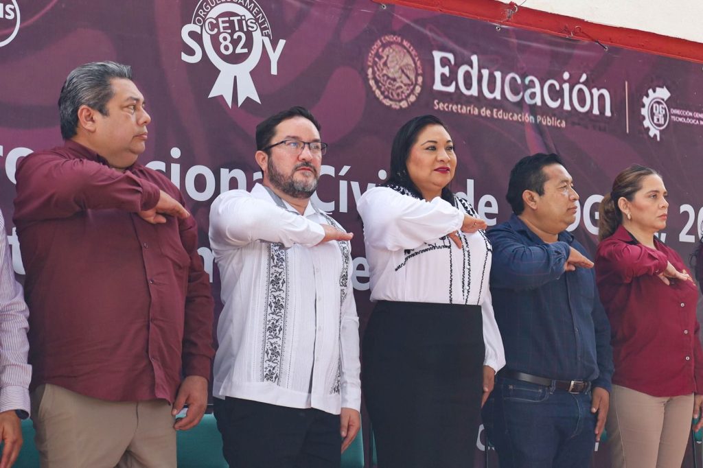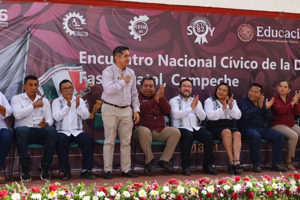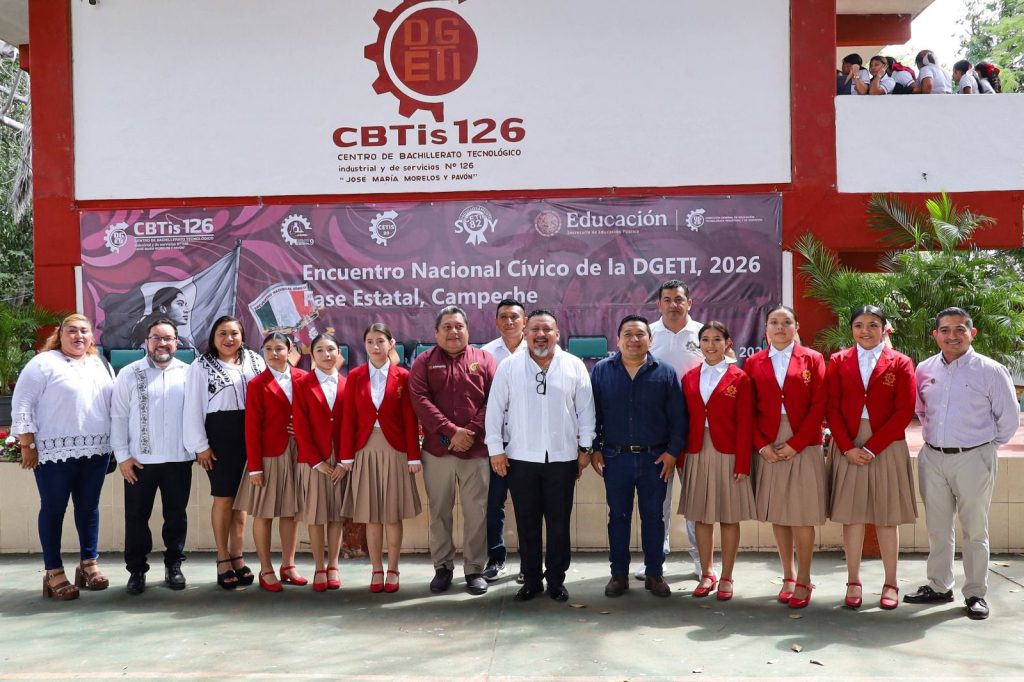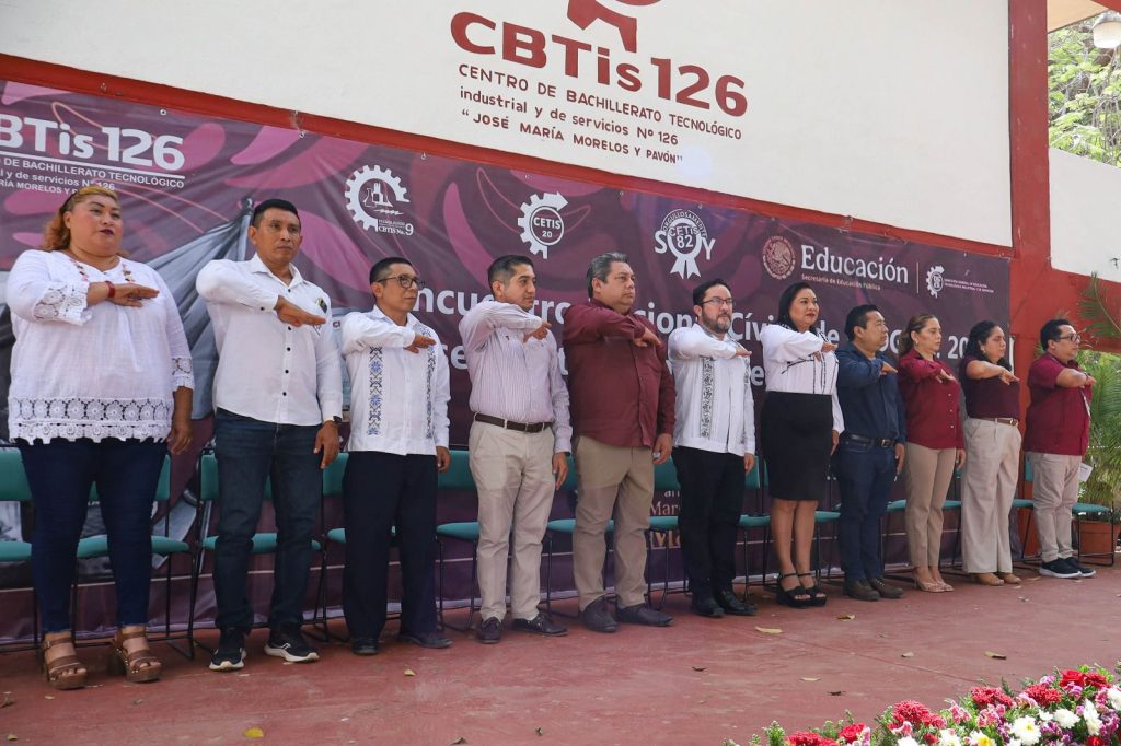 Asimismo, se contó con la presencia de Ramanuján Gómez Herrera, comisionado responsable de la DGETI en Campeche; el presidente municipal de Dzitbalché, Luis Chan Puc; directivos de instituciones educativas de la región y representantes de padres de familia, quienes refrendaron su compromiso con la educación y la promoción de los valores cívicos.