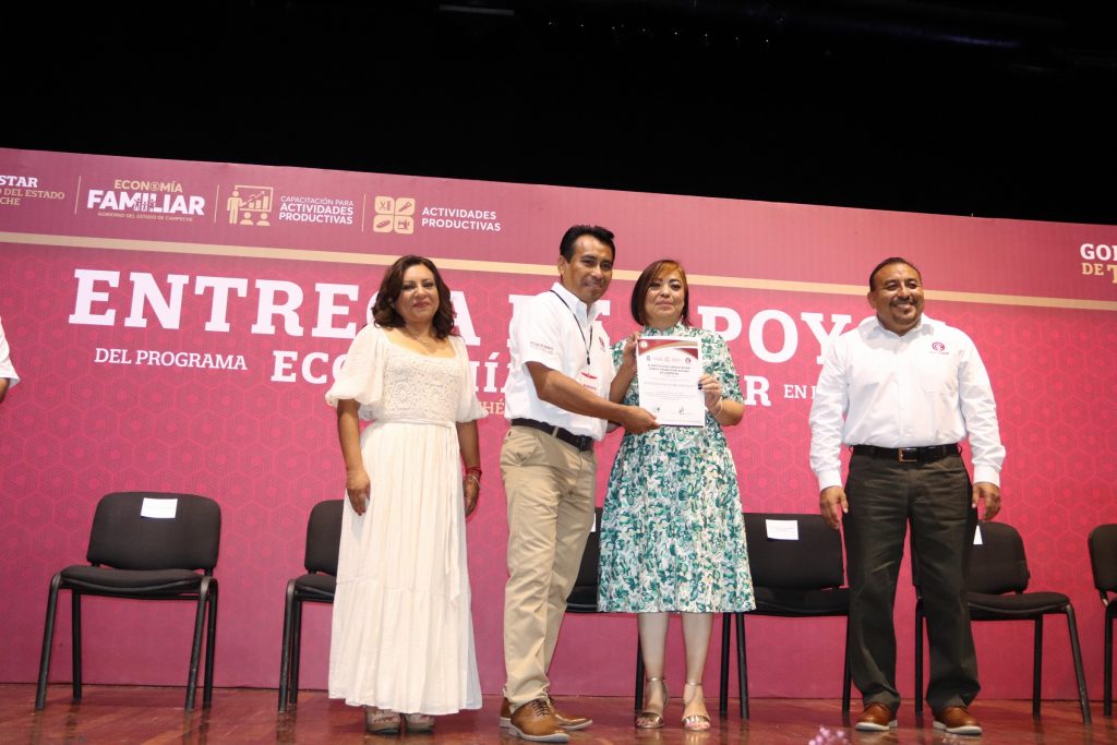 El evento de entrega se realizó en el teatro “Pedro Raúl Suárez Cárdenas” de la ciudad de Calkiní, donde los beneficiaros participaron previamente en un taller denominado “Aprendiendo a emprender por el bienestar de mi familia”, que les dotará de herramientas para el manejo óptimo de los recursos.
