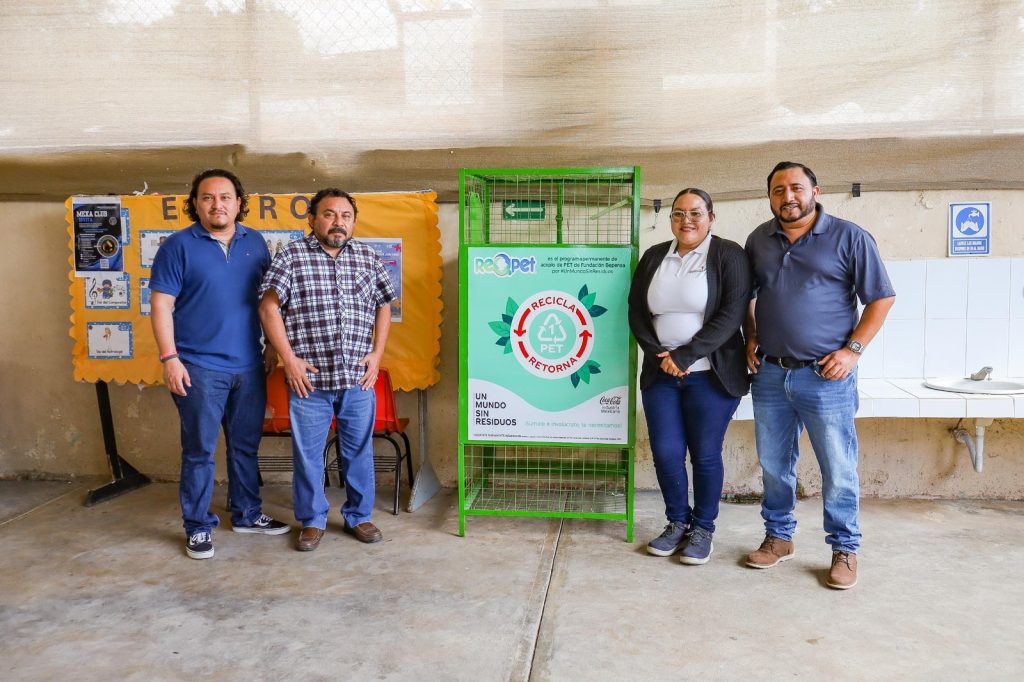 Con el objetivo de fomentar el cuidado del medio ambiente y fortalecer la cultura del reciclaje en el municipio, el Director de Medio Ambiente y Recursos Naturales del H. Ayuntamiento de Calkiní, Israel Pan Chi, junto con el Director de Desarrollo Económico, Agropecuario, de Inclusión y Bienestar Social, Filiberto Jesús Ku Turriza, y representantes de la Fundación Bepensa a través de su programa ReQPET, realizaron la entrega de contenedores para el reciclaje de botellas PET.