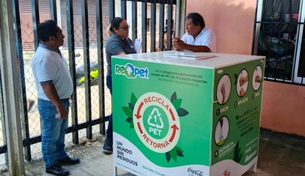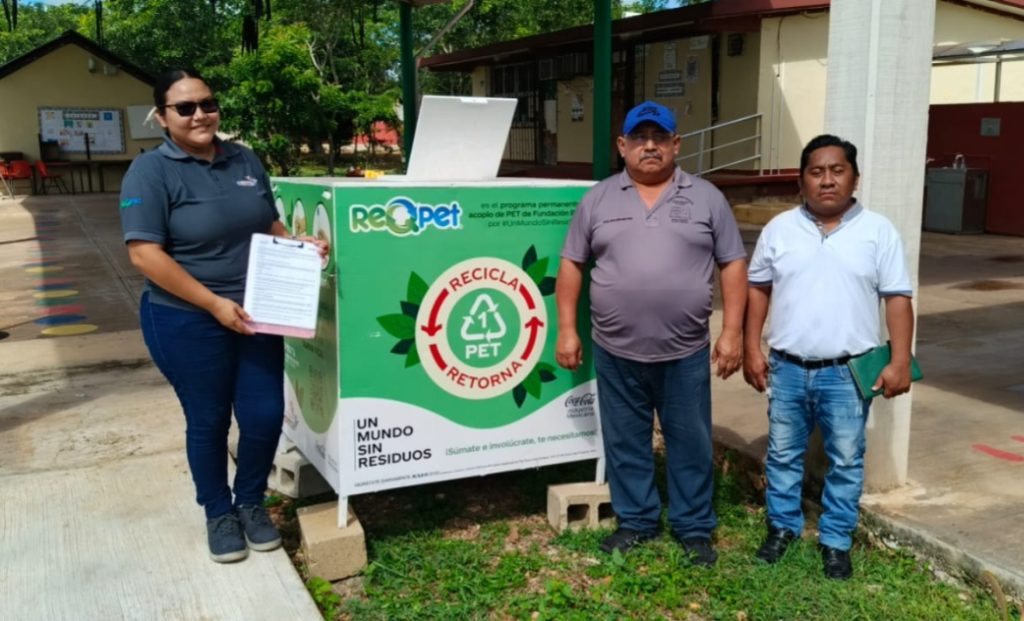Con el propósito de fortalecer la cultura del reciclaje y el cuidado del medio ambiente, la Fundación Bepensa, a través de la supervisora de proyectos, Lic. Gabriela Segura Vázquez, en coordinación con la Alcaldía de Calkiní mediante la Dirección de Medio Ambiente y Recursos Naturales, encabezada por el Prof. Israel Pan Chi, llevó a cabo la entrega de contenedores del programa RqPET en diversas instituciones educativas de la cabecera municipal.