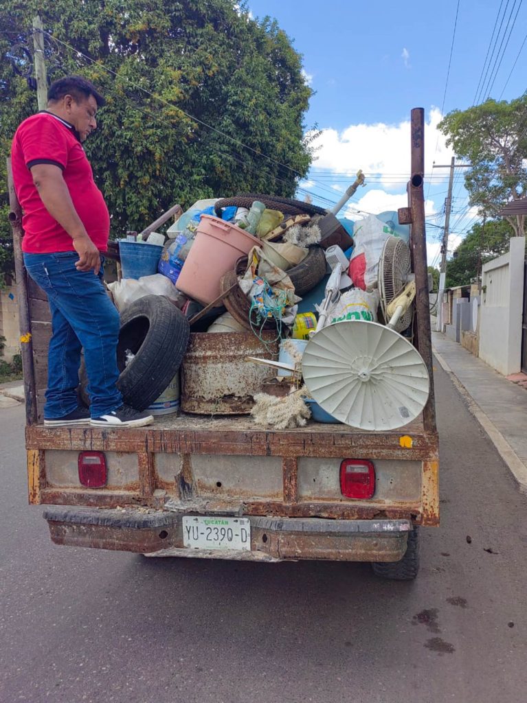 En materia de descacharrización, las brigadas recorrieron las comunidades de Santa Cruz Pueblo, San Román, Obispo, Las Flores, Centro, Kilakán, San Martín, San Luisito y Tepakán, realizando 31 viajes al basurero y acarreando un total de 24,100 kilos de cacharros.