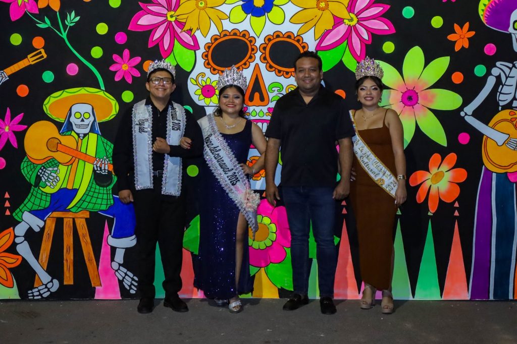 Durante el evento también estuvieron presentes la reina de la Feria Artesanal, Cultural y Deportiva 2025, Srita. Amayrani de Fátima Chan Tamay, así como los Reyes del Carnaval 2025, Srita Naomi Yazreth Pech Balam y el joven Fernando Manuel Turriza Maas, quienes acompañaron esta noche festiva dedicada al Janal Pixán.