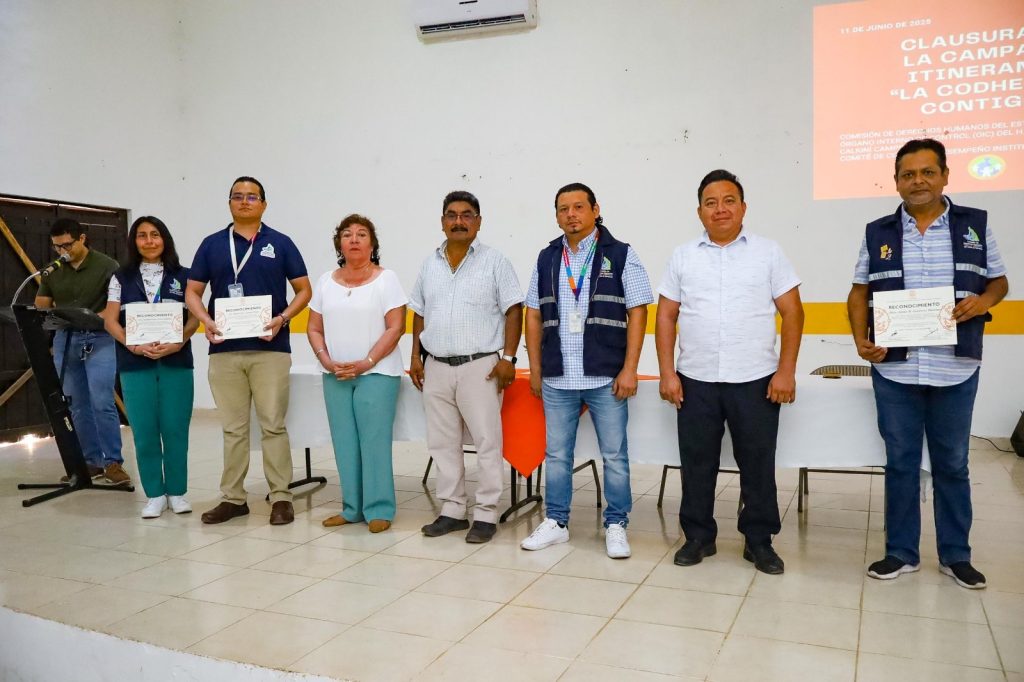 Al término de las actividades, las autoridades municipales hicieron entrega de reconocimientos a los ponentes de la Comisión de Derechos Humanos que participaron en esta campaña itinerante: Lic. Adalberto Ucán Contreras, Licda. Iwalani Guadalupe Lara Cantún, José Luis Qui Pantí, Mtro. Fermín Chi Nah, Mtro. Jaime Horacio Gutiérrez Martínez y P.D. Fernanda Gabriela Caballero Silva.