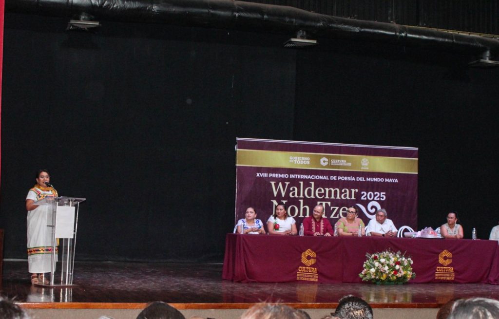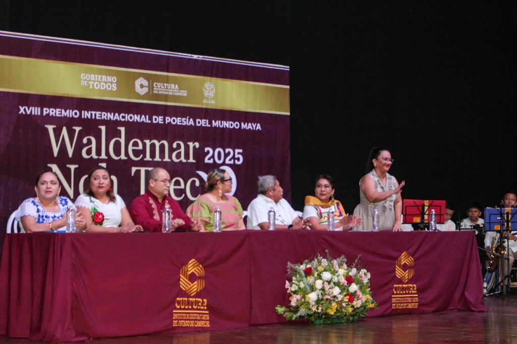 La Alcaldía de Calkiní, en coordinación con el Instituto de Cultura y Artes del Estado de Campeche, llevó a cabo la entrega del XVIII Premio Internacional de Poesía del Mundo Maya “Waldemar Noh Tzec 2025”, reconociendo a destacadas voces que preservan y promueven la riqueza lingüística y cultural de la región.
