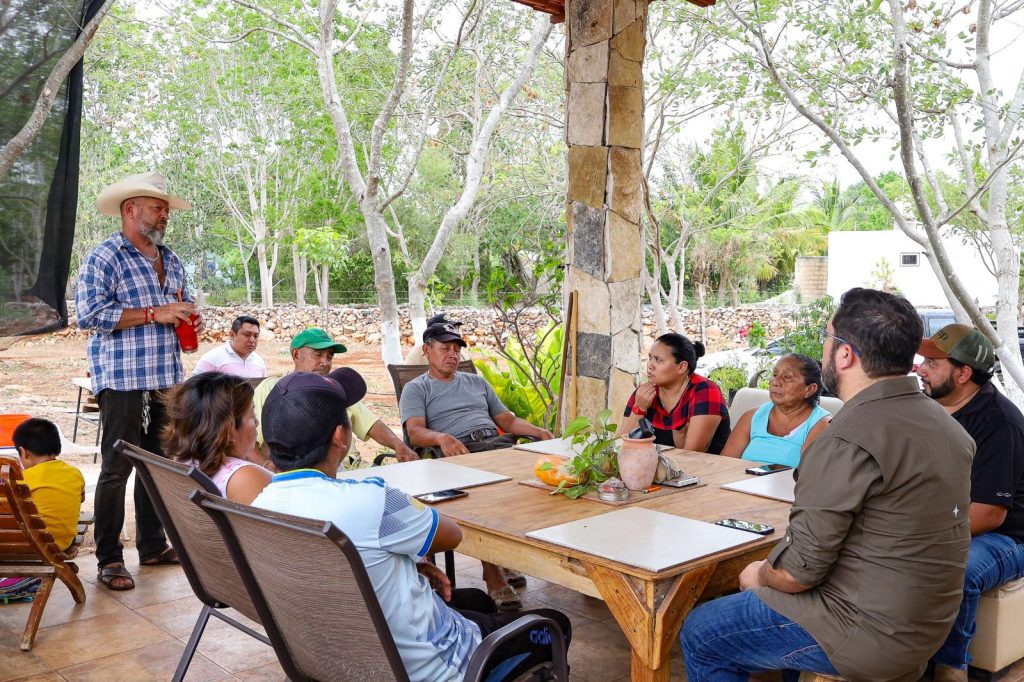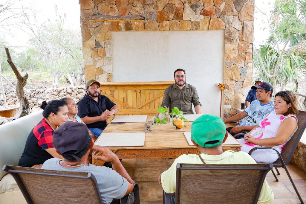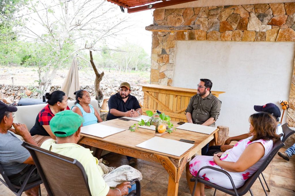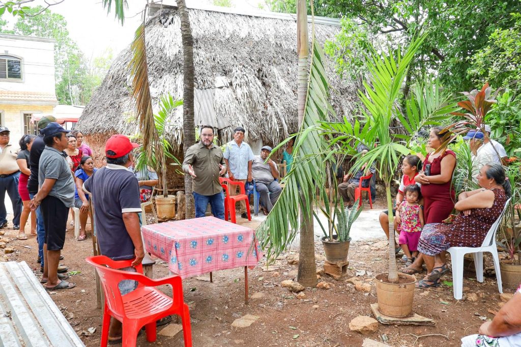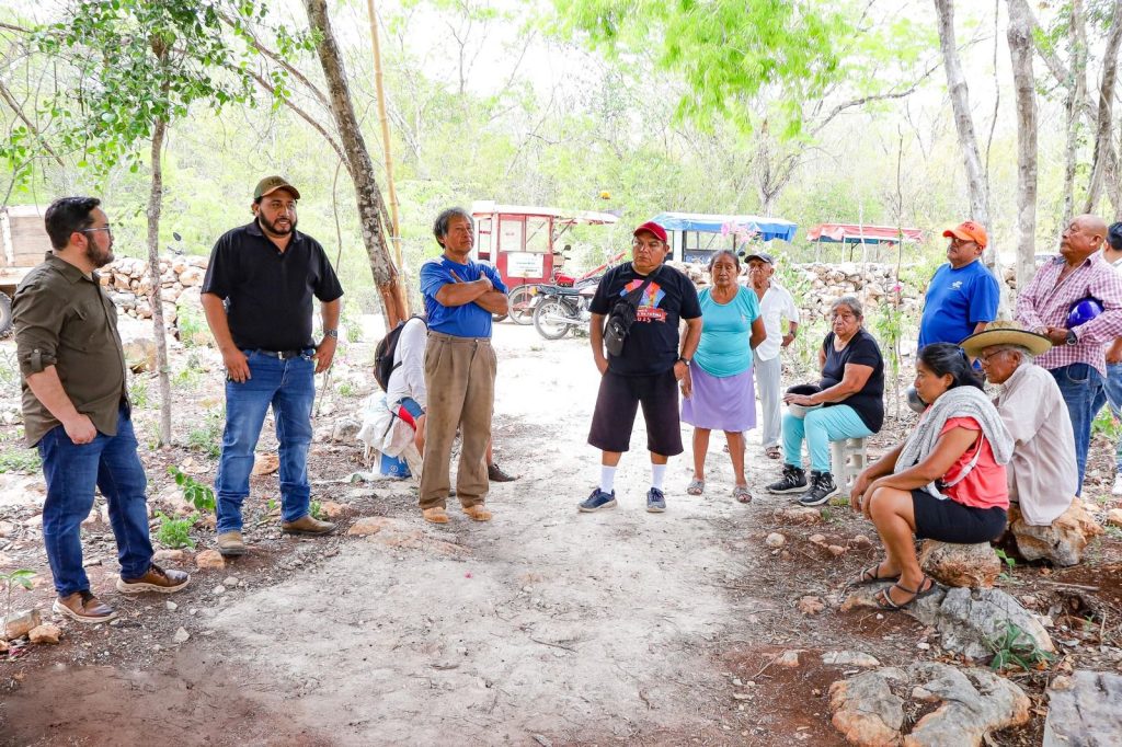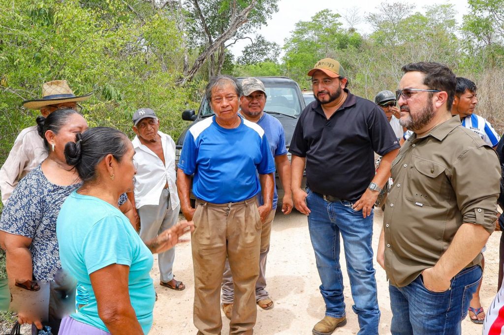 La jornada comenzó en la comunidad de Santa Cruz Pueblo, donde el alcalde sostuvo un encuentro con los representantes Paulino Cen Cahuich y Wilberth May May. Ambos agradecieron su visita y el respaldo del gobierno municipal para la ejecución de esta importante obra.