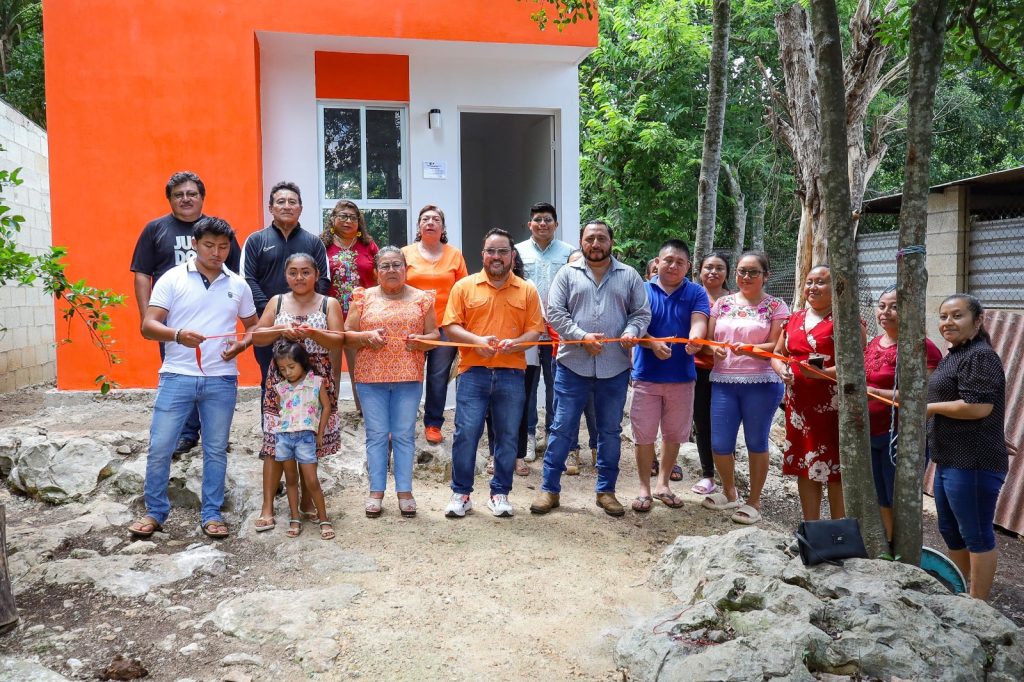 Acompañado del director de Desarrollo Económico, Agropecuario, de Inclusión y Bienestar Social, Ing. Filiberto Jesús Ku Turriza, regidores, directores, así como de las familias beneficiarias y habitantes de la comunidad, el edil encabezó el corte del listón inaugural de estos cuartos dormitorios, que benefician de manera directa a las familias de la comunidad.