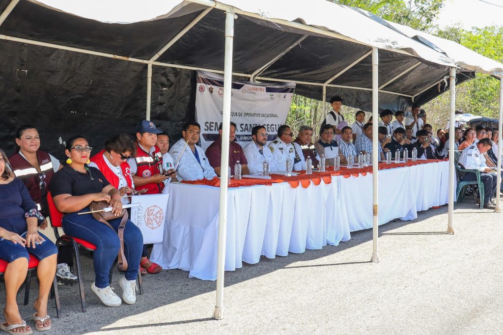 Durante su intervención, Milton Millán señaló que, durante esta temporada vacacional 2026, el municipio de Calkiní contará con un operativo de seguridad permanente, con el objetivo de brindar atención oportuna en caso de cualquier emergencia.