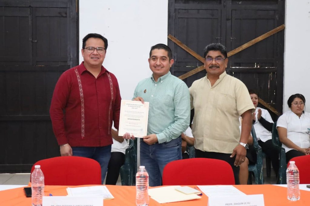 Al iniciar la sesión, el secretario Joaquín Uc Kú realizó el pase de lista y declaró formalmente instalada la reunión. Posteriormente, se efectuó la reestructuración del Comité Municipal de Salud, integrándose la Mtra. Concepción Cruz Carvajal, presidenta del Consejo de la Cruz Roja Mexicana Delegación Calkiní, como vocal de Salubridad Local. De igual forma, se tomó protesta al Profr. Gustavo Cuevas Pech, director del CBTIS 126, quien se suma como vocal de Instituciones Educativas.