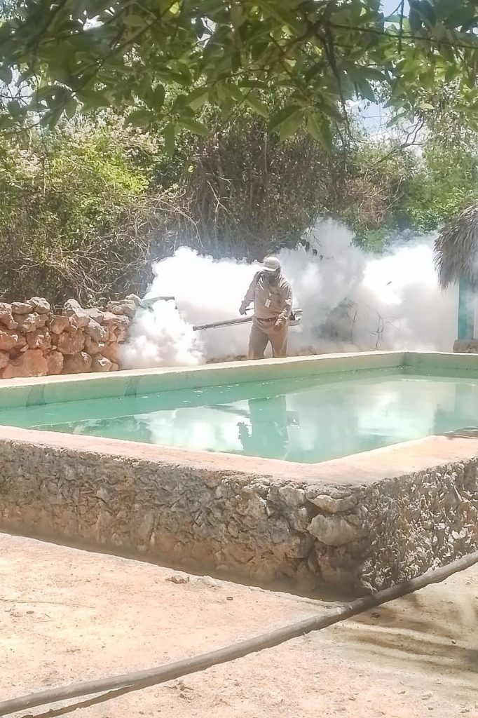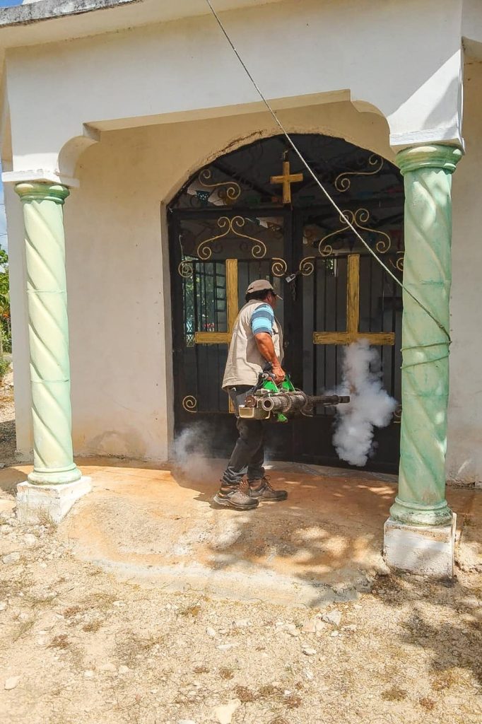 Temporada vacacional activa nebulización preventiva en capillas y balnearios en Calkiní